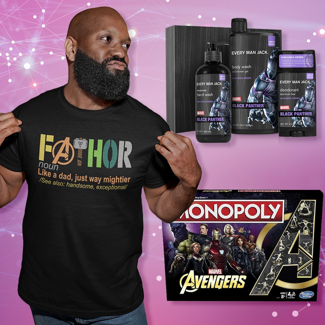 Some of the things on our list include an Avengers-themed Monopoly game where you collect heroes to ruin your competitors. And a 480-piece Lego kit that, once assembled, turns into a full-head replica of Iron Man’s helmet. And for the dad trying to convince you he has it all, we recommend you get him a Thor Hammer toilet roll holder.